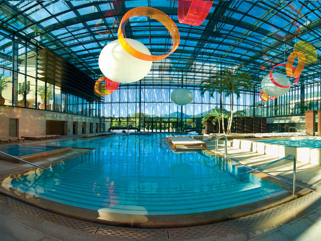 Armoniosamente inserite nell’ambiente circostante, le Terme offrono un’oasi di quiete e relax nel cuore della città. Le ampie vetrate, che contraddistinguono il luminoso cubo di vetro e le sale dei trattamenti, permettono di mantenere anche in inverno il contatto con il paesaggio, mentre in estate un parco di oltre 5 ettari è a disposizione degli ospiti delle Terme.