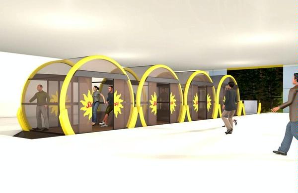 Tra le particolarità del progetto va segnalato il sistema di rotazione che, applicato alle carrozze, consentirà di viaggiare sempre in orizzontale.