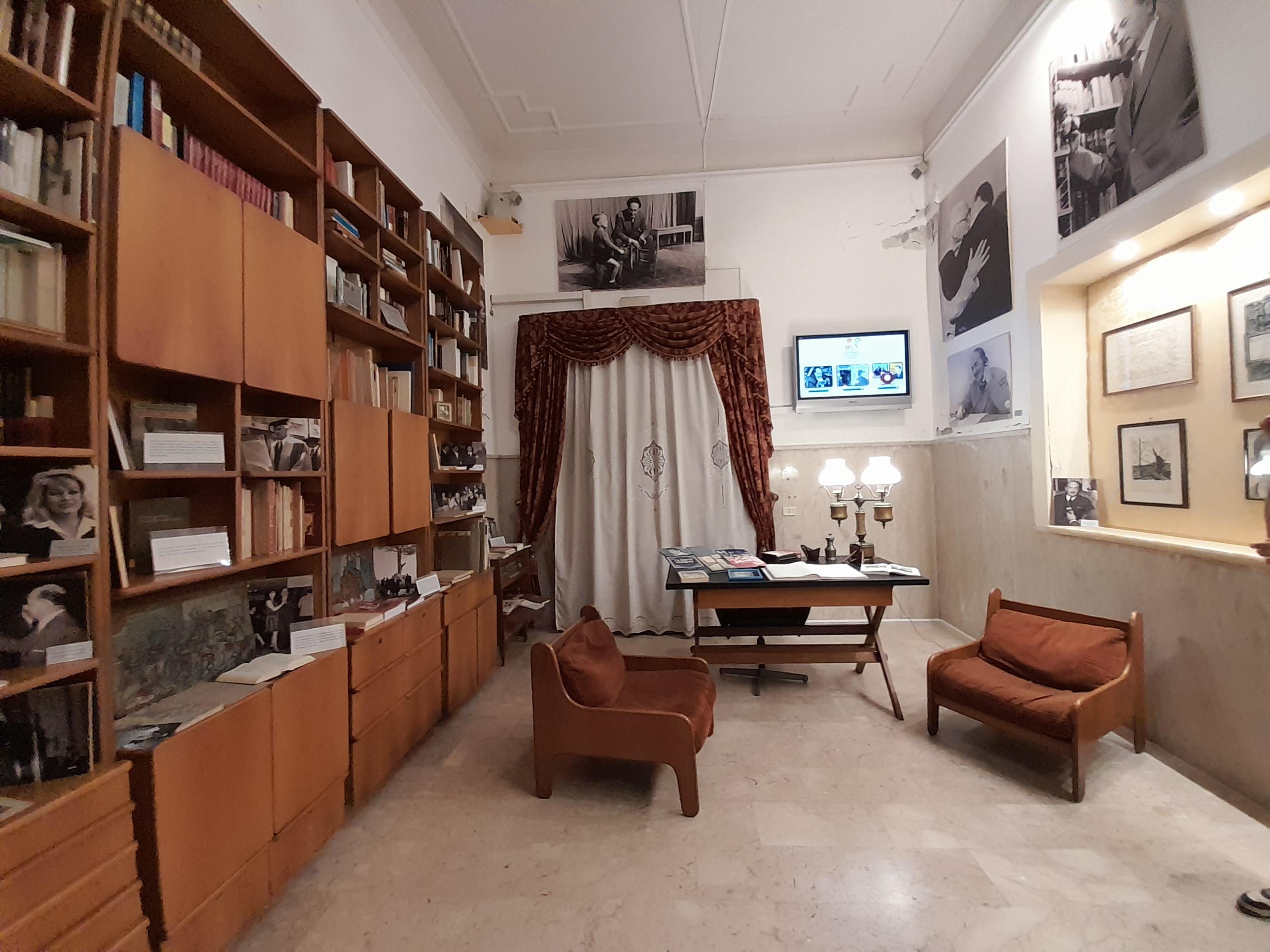 Nella ex sala d’attesa della stazione di Roccalumera, ha trovato infine ospitalità lo studio originale della sua casa di Milano (Corso Garibaldi 16). Oltre agli arredi, una scrivania dall’inconfondibile design svedese, la libreria, sono conservati oggetti di uso quotidiano (penne, accendini, ecc.). Qui il visitatore si può accomodare per prendere visione di alcuni video dell’epoca, dalle Teche Rai fino al filmato della cerimonia di conferimento del Premio Nobel, concessa dalla Televisione Svedese.